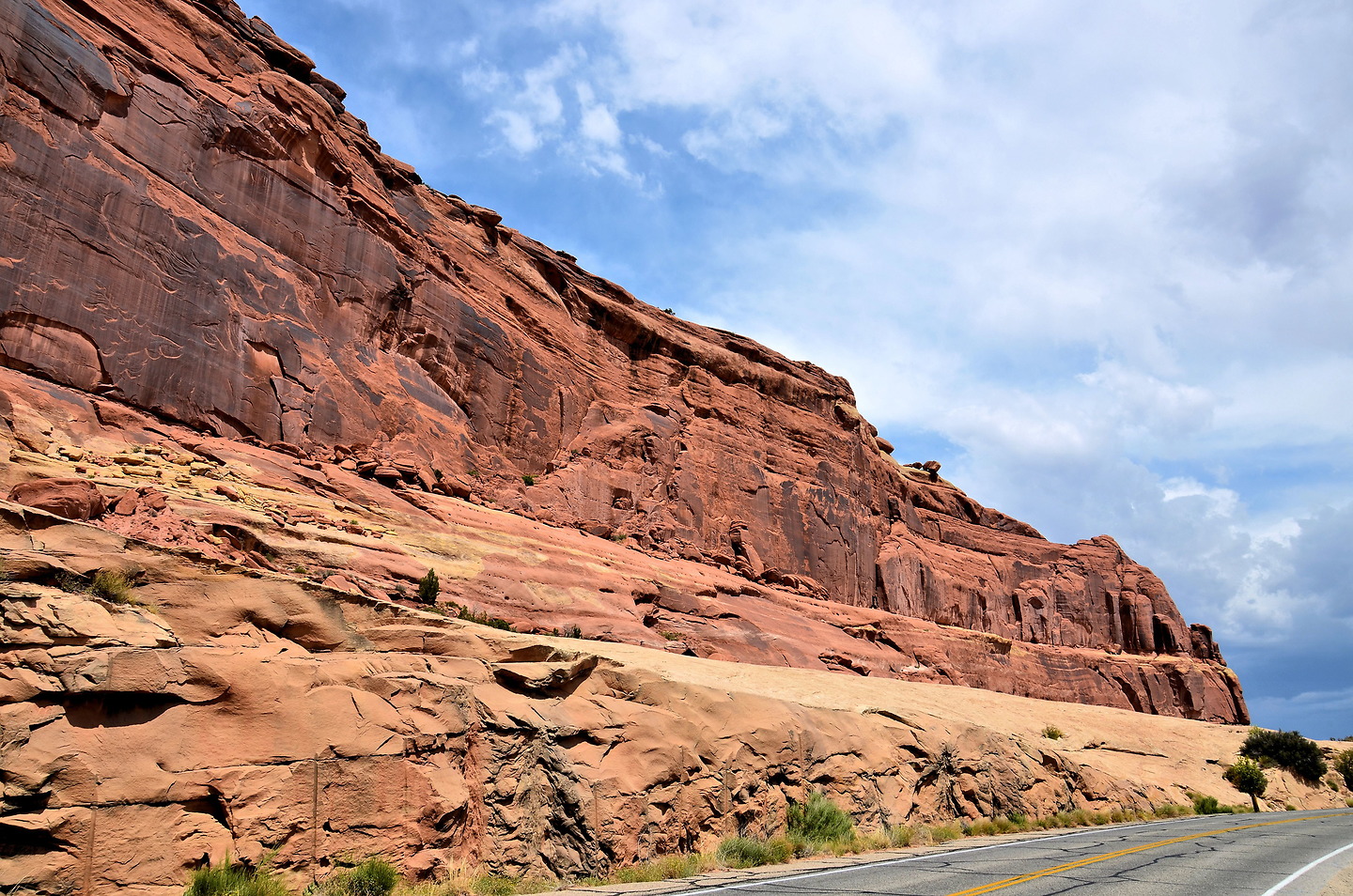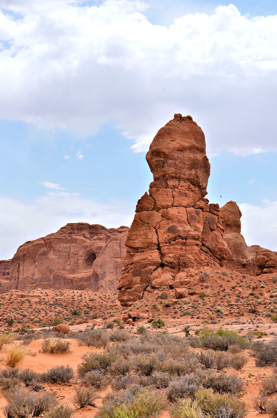 The Great Wall, Arches Scenic Dr, Moab, UT 84532Another named pinnacle you will encounter at the base of The Great Wall is The Phallus (80 feet tall) and nearby is The Poodle (160 feet tall). Equally interesting are the numerous shallow caves in the rockface. They are on the evolutionary path toward becoming arches in the very distant future.