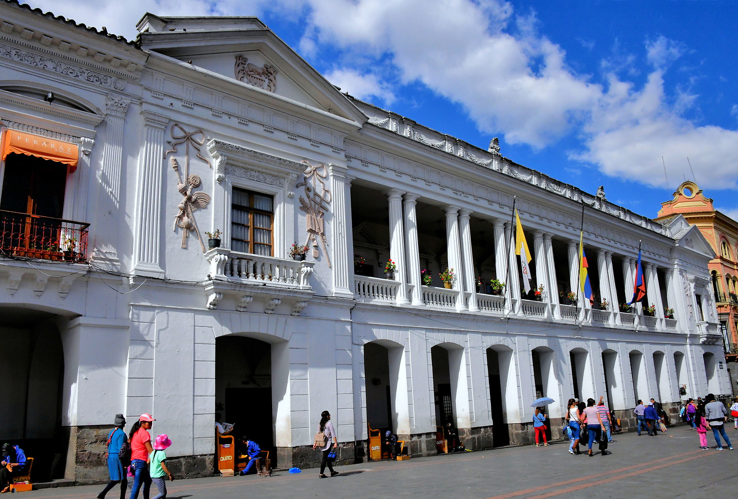 Eugenio Espejo Oe4-31, Quito 170401, Ecuador… and from the roofs of the hotel and Archbishop’s Palace. A combatant blew backward, convulsed, and collapsed onto the cargo bed. A decade after Spaniards conquered Quito, Pope Paul III created the Diocese of San Francisco de Quito in 1545. The city would have a dozen bishops before this two-level, colonnade building was built along La Plaza Grande in 1700. The Archbishop’s Palace was subsequently renovated in the mid-19th century and again in the 1970s.