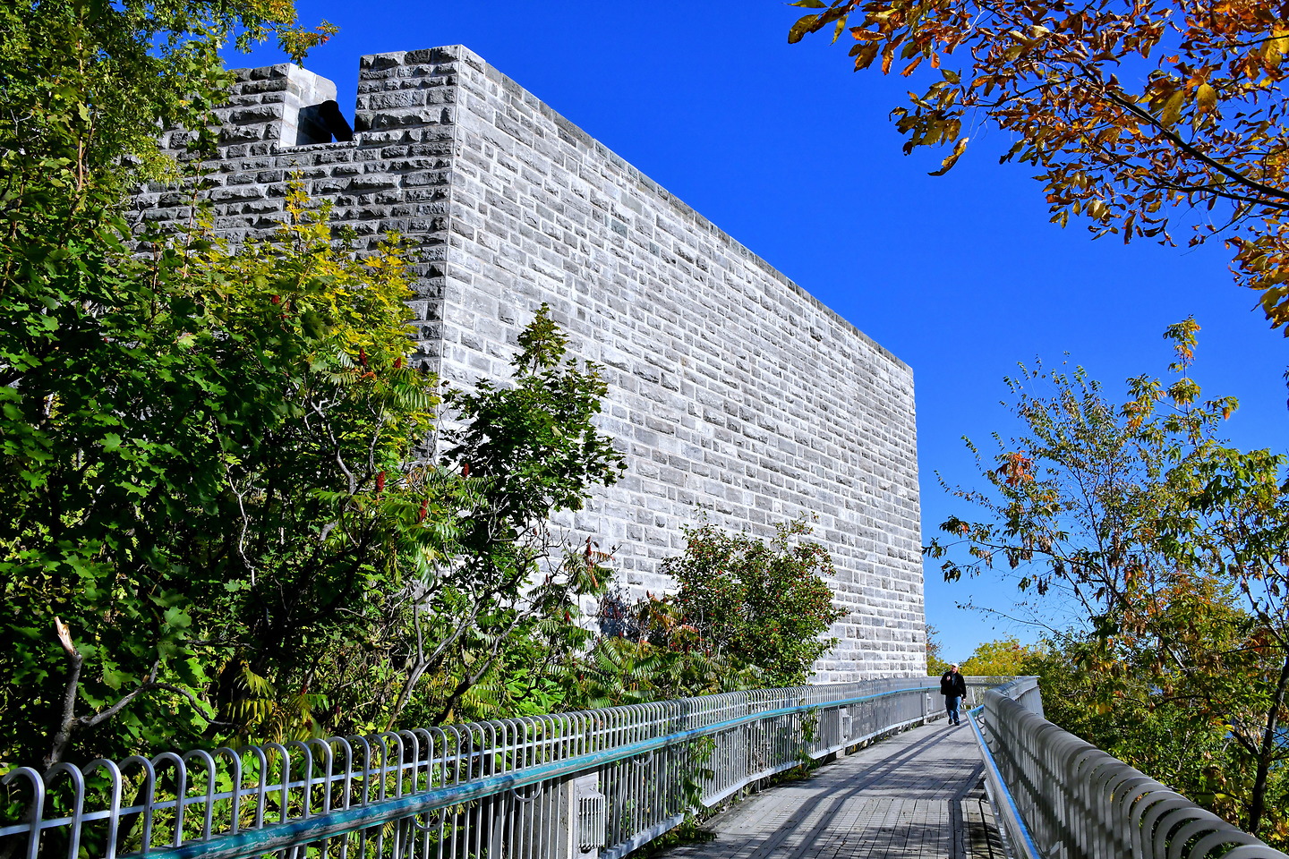 Promenade des Gouverneurs, Québec, QC G1K 4J2, CanadaThe half-mile, elevated boardwalk was flanked by steep fortress walls on one side and a 330-foot drop on the other. The narrow, fenced-in corridor was a perfect kill zone. Along Governors’ Promenade are several La Citadelle bastions ranging in age from Cap Diamant Redoubt (late seventieth century) to Mann Bastion (1829). The largest of the protruding cannons is Rachel. The artillery was capable of hitting a ship 1.5 miles away.