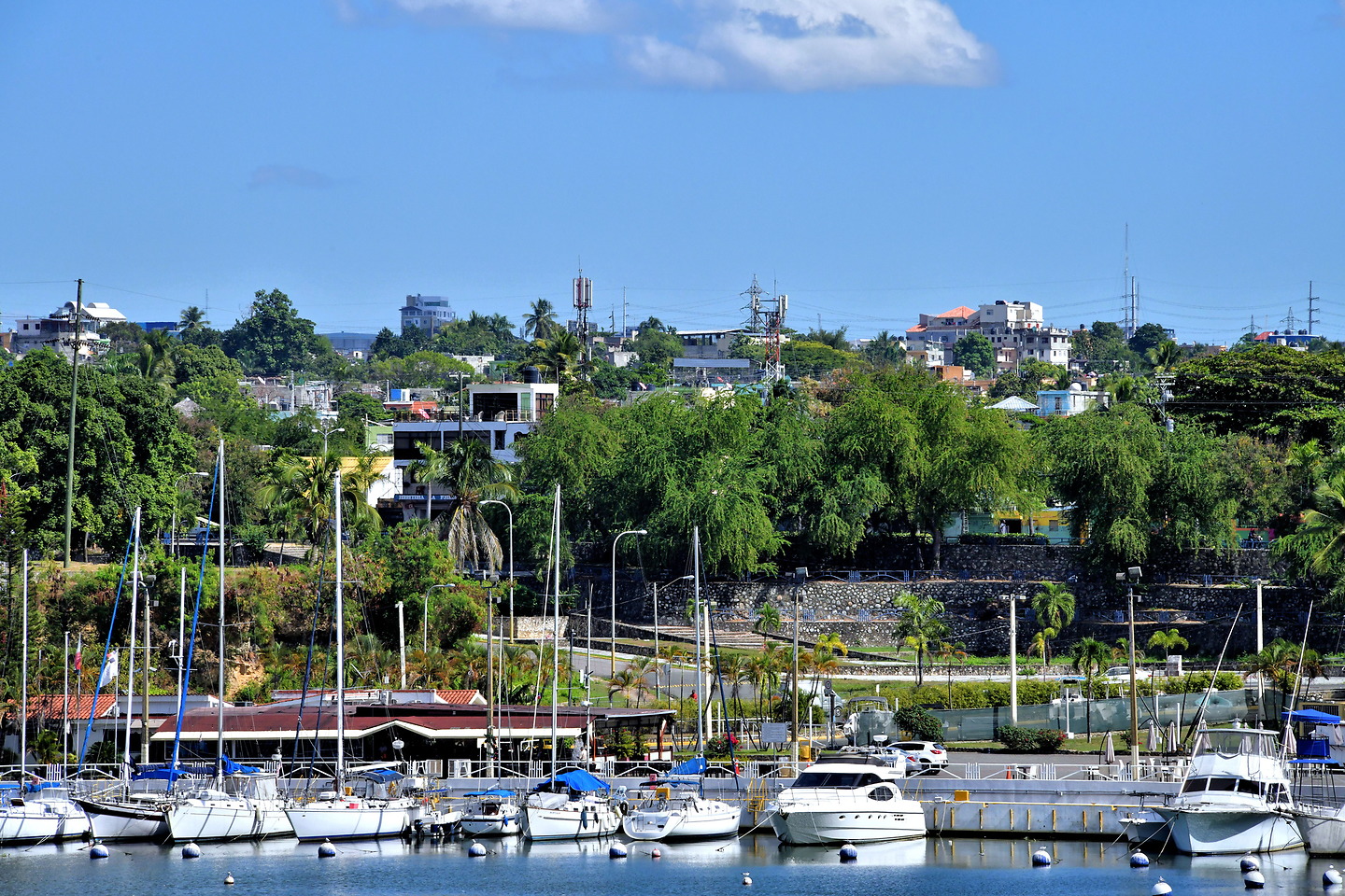 Reloj de Sol, Calle Mercedes & Calle Las Damas, Santo Domingo 10210, Dominican RepublicFrom the top of the defensive wall, Chris described the Ozama River below. Along the east bank shown from Sundial Plaza is Bartholomew Columbus Marina, named after the younger brother of Christopher Columbus. Rio Ozama travels for nearly 100 miles before flowing into the Caribbean Sea at the south end of Santo Domingo.