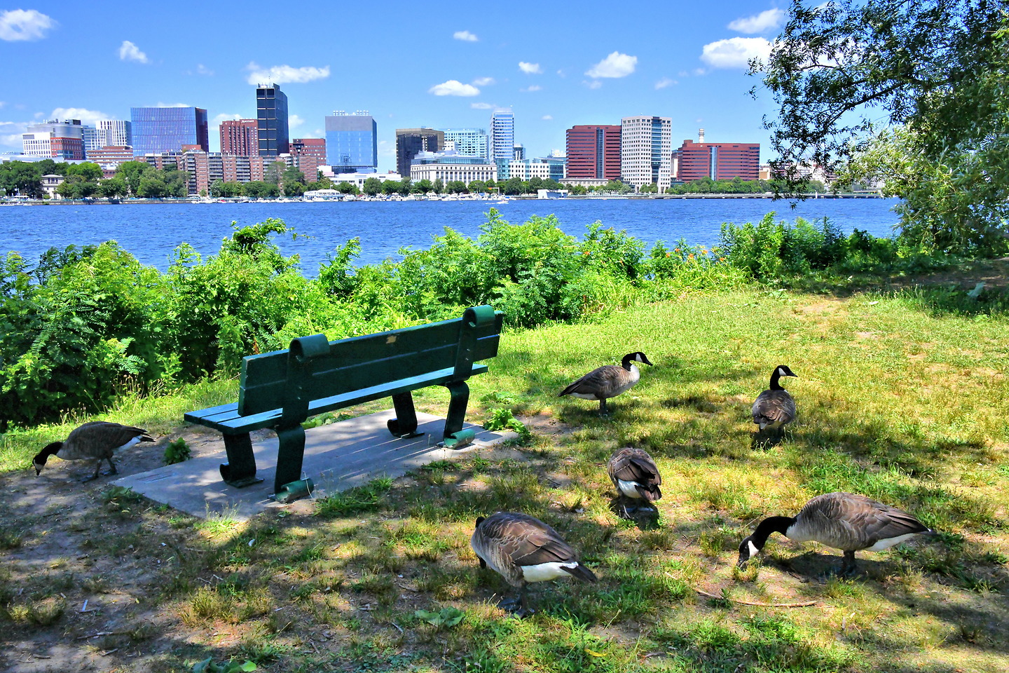 Hatch Shell, Charles River Esplanade, Boston, MA 02108She accelerated along the Charles River Esplanade at full speed as sweat began rolling off her brow and stinging her eyes. The esplanade is a scenic setting for biking, running, strolling, dog walking, or just sitting on a bench and people watching. Wooden docks are popular with sunbathers. Near the Hatch Shell is Community Boating. The nonprofit has been teaching children how to sail on the Charles River since 1936.