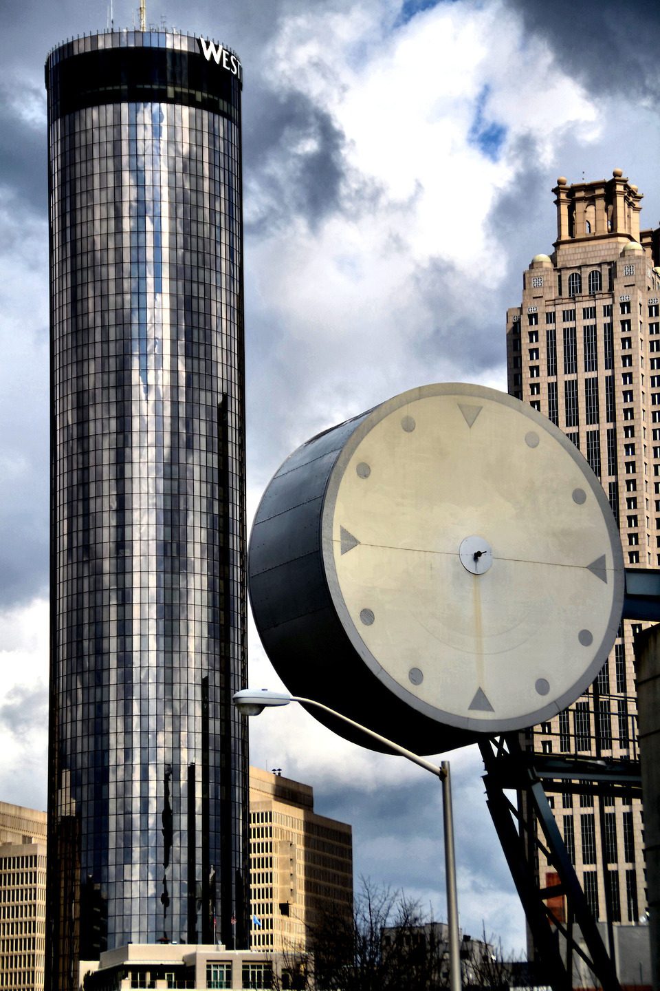 Kennedy Space Center, Visitor Complex, SR 405 Kennedy Space Center, FL 32899When it opened in 1976, The Westin Peachtree Plaza was not only the tallest building in Atlanta but also the tallest hotel in the world at 73 stories. Although it lost both distinctions, it still is an impressive glass cylinder. On the right is 191 Peachtree Tower. Within a short distance of this clock are the headquarters of CNN, Coca Cola, UPS, AT&T, Delta, Rubbermaid and Home Depot.