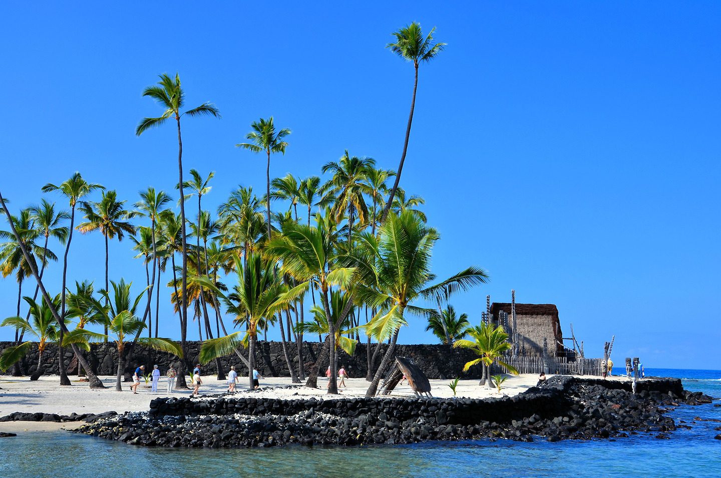 1766 Wailuku Dr, Hilo, HI 96720Pu’uhonua o Hōnaunau is a 180 acre national park on the leeward coast of the Big Island. The waterfront property once was the royal grounds for Hawaiian chiefs. Behind the coconut palm trees is the Great Wall. This former protection of the royal compound is 10 feet tall and 17 feet thick. The defense was built around 1550 without the use of mortar. In the foreground is Keone’ele Cove.